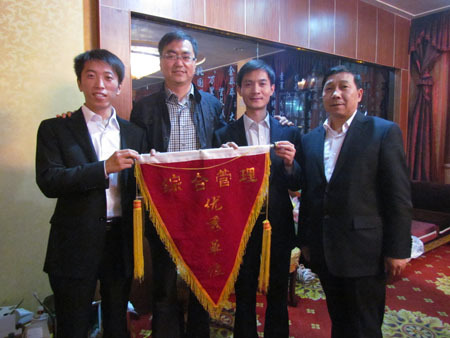 在此次會(huì)議上舉行了“三比三看”活動(dòng)首面流動(dòng)紅旗頒發(fā)儀式,檸條塔調(diào)運(yùn)部以“管理規(guī)范、團(tuán)隊(duì)和諧、服務(wù)優(yōu)質(zhì)、環(huán)境整潔”贏得了廣大司機(jī)、客戶及礦方的認(rèn)可和肯定,從而獲得了首面流動(dòng)紅旗。檸條塔調(diào)運(yùn)部主管王鵬(小)在會(huì)上發(fā)表了獲獎(jiǎng)感言:在廣通神木分公司全力沖刺2012年各項(xiàng)目標(biāo)任務(wù)的關(guān)鍵時(shí)期,分公司授予檸條塔調(diào)運(yùn)部的這面綜合管理流動(dòng)紅旗,不僅激勵(lì)了檸條塔調(diào)運(yùn)部全體員工的工作熱情和工作積極性,更是鞭策了廣通神木分公司的全體員工。我們將以此為契機(jī),立足本職,學(xué)習(xí)借鑒兄弟部門的先進(jìn)經(jīng)驗(yàn),不斷改進(jìn)自己的工作方式、方法,力爭(zhēng)使檸條塔調(diào)運(yùn)部的各項(xiàng)工作能再上新臺(tái)階。